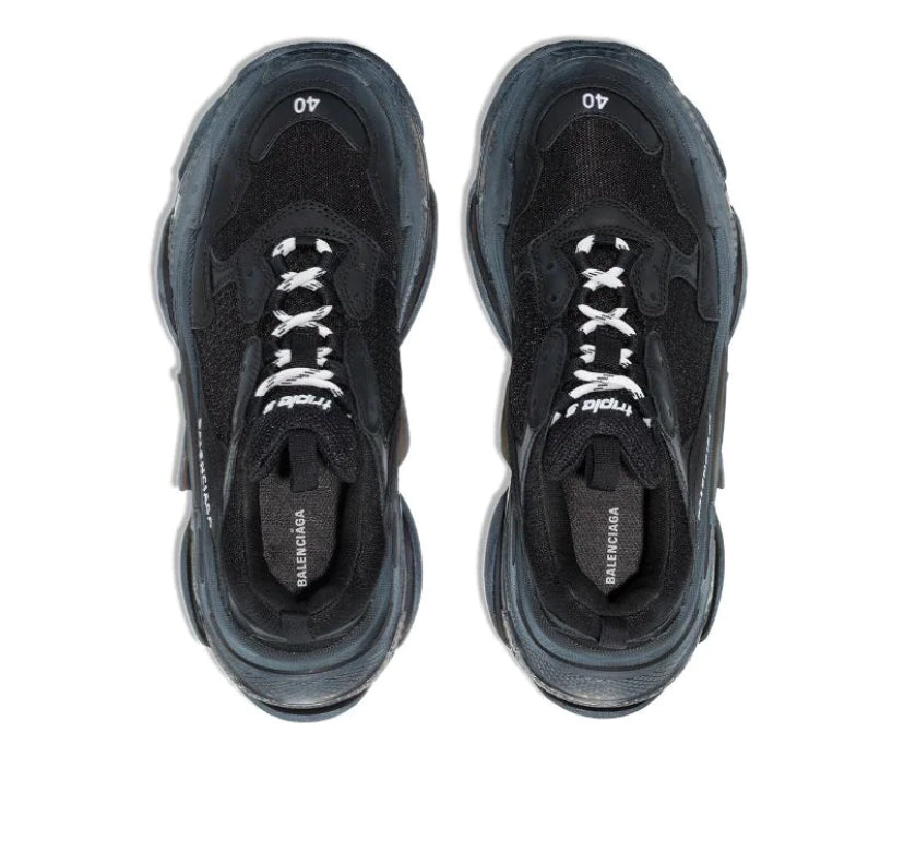 Introducing the Triple S Sneakers, the epitome of modern luxury and urban style. Crafted with a blend of premium materials, these sneakers boast a bold and dynamic design, featuring a chunky silhouette with a mix of leather, mesh, and rubber overlays. The innovative triple-stacked sole provides unparalleled comfort and support, while the iconic logo details add a touch of high-fashion flair. Whether you're hitting the streets or elevating your casual ensemble, the Triple S Sneakers are the ultimate statement piece for the fashion-forward individual. Step into unparalleled style and comfort with these trendsetting kicks